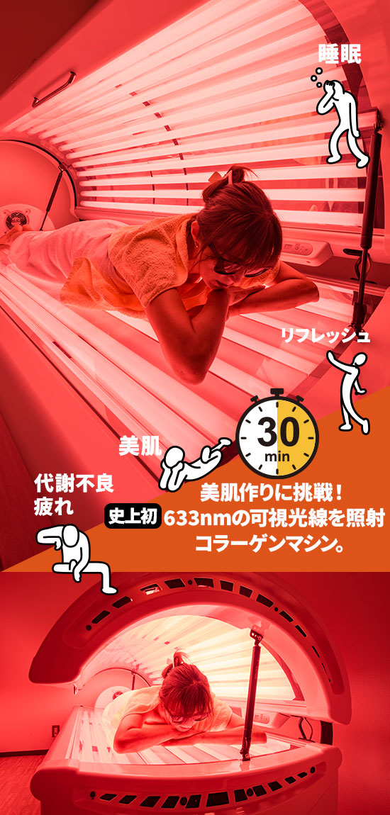 633nmの光が肌の奥深くまで届き、コラーゲンの合成を促進。肌本来の力を引き出し、ハリ・ツヤ・透明感をサポートします。翌日から変化を実感される方も多く、日々のスキンケアでは得られない特別な美肌体験を手軽に始めていただけます。